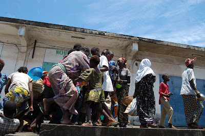 Those in wheel chairs wait and see what their kids will get from this turbulent share of just a 50kg bag of rice which is actually meant for a single family now for a whole crowd. At the end most of them goes home empty handed and sleeping hungry.